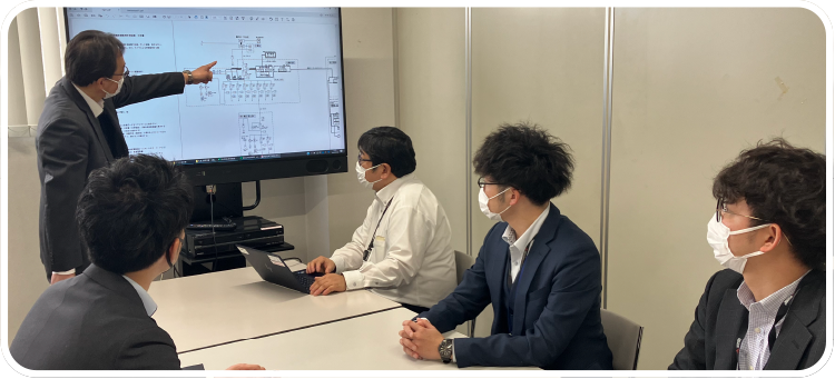 図面などの技術資料と現地との相違点や、据付ける選定機器に問題がないか、協力会社の方と調査して、客先と打合せます。